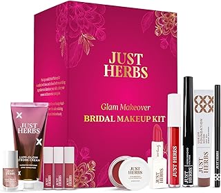 Just Herbs Wedding Kit Glam Essentials With Matte Lipstick|Lip & Cheek Tint|Strobe Cream|Kajal|Sindoor|Eyeshadow Palette|Nail Paint|Serum Foundation|Blush Drops Makeup Kit For Women (Pack Of 9)