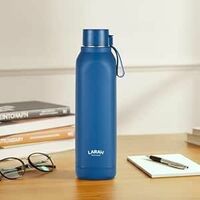 Larah by Borosil 700 ml Cube Blue Stainless Steel Water Bottle | Made in India Pu Insulated Therm...