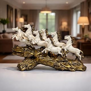 UAG Exports 7 Running Horses White Resin Statue 19 Inch | Vastu Feng Shui Horse Showpiece for Home & Office Decor | Symbol of Success, Wealth, Power | Decorative Horse Sculpture with Golden Wave Base