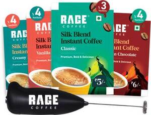 RAGE Silk Blend Assorted Sachets (Pack of 15) + Frother Instant Coffee (15 x 1.5 g, Assorted Flav...