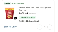 Jiomart-Brooke Bond Red Label Strong Blend Tea 1 kg- 300Rs